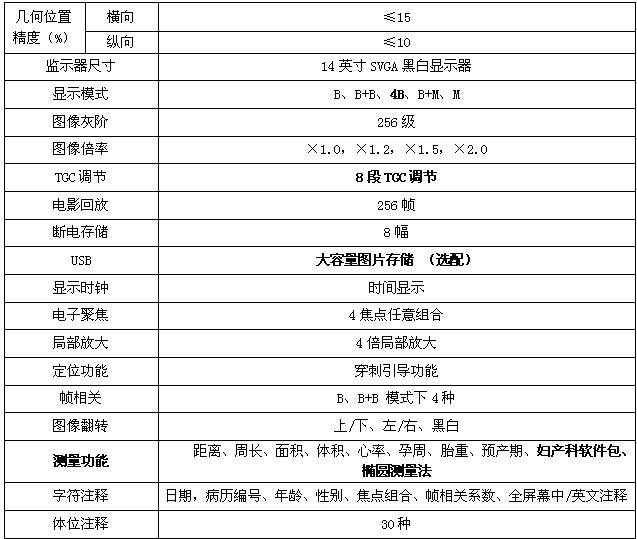 可選配:6.5MHz變頻探頭,7.5MHz高頻探頭,15英寸彩色液晶顯示器;
