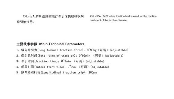 頸腰椎牽引床對腰椎間盤突出癥、變性紊亂、勞損、脫位及并發(fā)不全截癱經(jīng)臨床使用療效顯著。