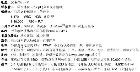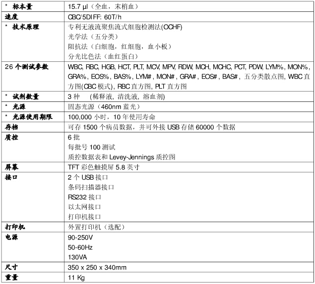 檢測(cè)原理:四角度激光散射技術(shù)測(cè)定WBC、5DIFF經(jīng)典電阻抗法測(cè)定WBC、RBC、PLT環(huán)保型無(wú)氰化物法測(cè)定HGB