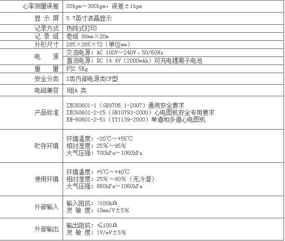 產(chǎn)品技術指標 1、彩屏7寸(800x480)液晶顯示屏 2、內(nèi)置可充電鋰電池,可待機10小時,持續(xù)打印3小時,連續(xù)打印300份心電圖。 3、自動模式下支持回放前10秒的心電圖,可快速打印、節(jié)約打印紙 4、支持全鍵盤中文拼音、五筆輸入病人和醫(yī)院信息 5、可直接通過USB、RS232進行文件另存、外接打印及上傳到ECGNET管理軟件上 6、適用小兒、急診、救護車等急救場合,無特殊使用環(huán)境限制 7、手動、自動、節(jié)律、存儲四種工作模式