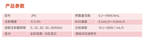 5、快速輸注          300ml/h(10ml注射器)、600ml/h(20ml注射器)800ml/h(30ml注射器)、1200ml/h(50ml注射器)