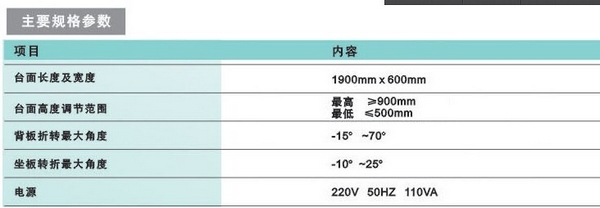 ● 腳板裝置采用可控氣彈簧來調(diào)整以達(dá)到人體各部位的合理性,有助于產(chǎn)婦的順利分娩;