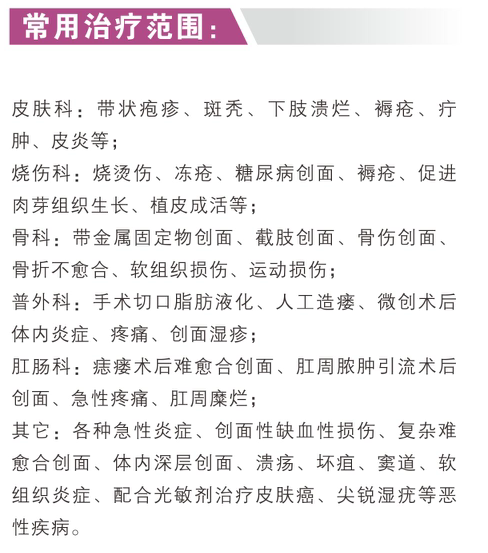 3、紅光可用于外陰及盆腔及術后的康復理療,同時也可用于軟組織損傷皮膚粘膜疾病