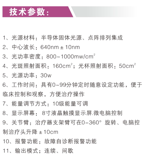 6、手持式治療頭光輸出口徑為10.5mm+1mm,導線長度不短于1m,不大于2m。