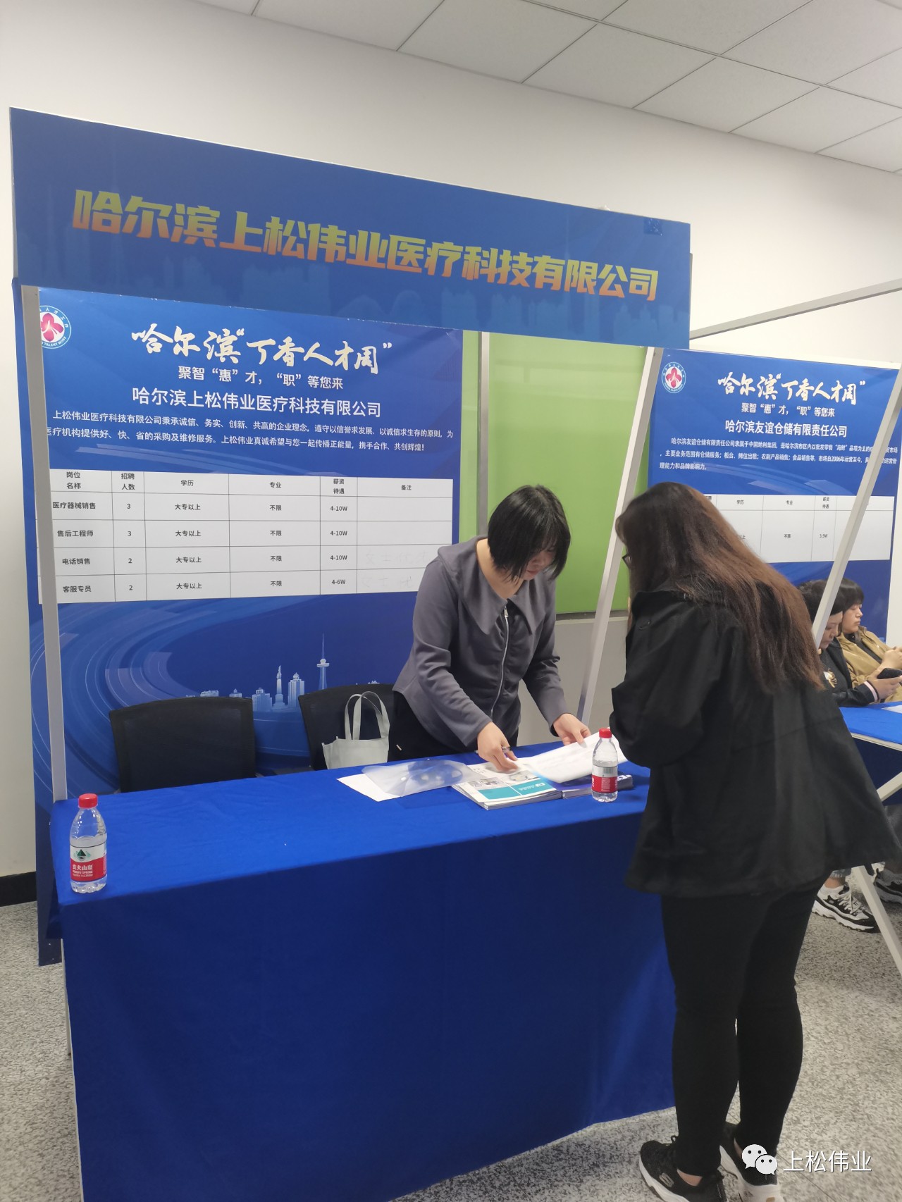 本次招聘會我公司主招銷售及售后人員,希望應(yīng)聘者能吃苦,有責(zé)任心,有較好的溝通工作能力和足夠的社會實踐。會上收到了學(xué)生投的簡歷,回到公司后會對學(xué)生簡歷情況進行認真考察。 上松偉業(yè)醫(yī)療重視人才、吸引人才、培養(yǎng)人才,歡迎廣大高校畢業(yè)生前來應(yīng)聘,上松偉業(yè)醫(yī)療期待您的加入。