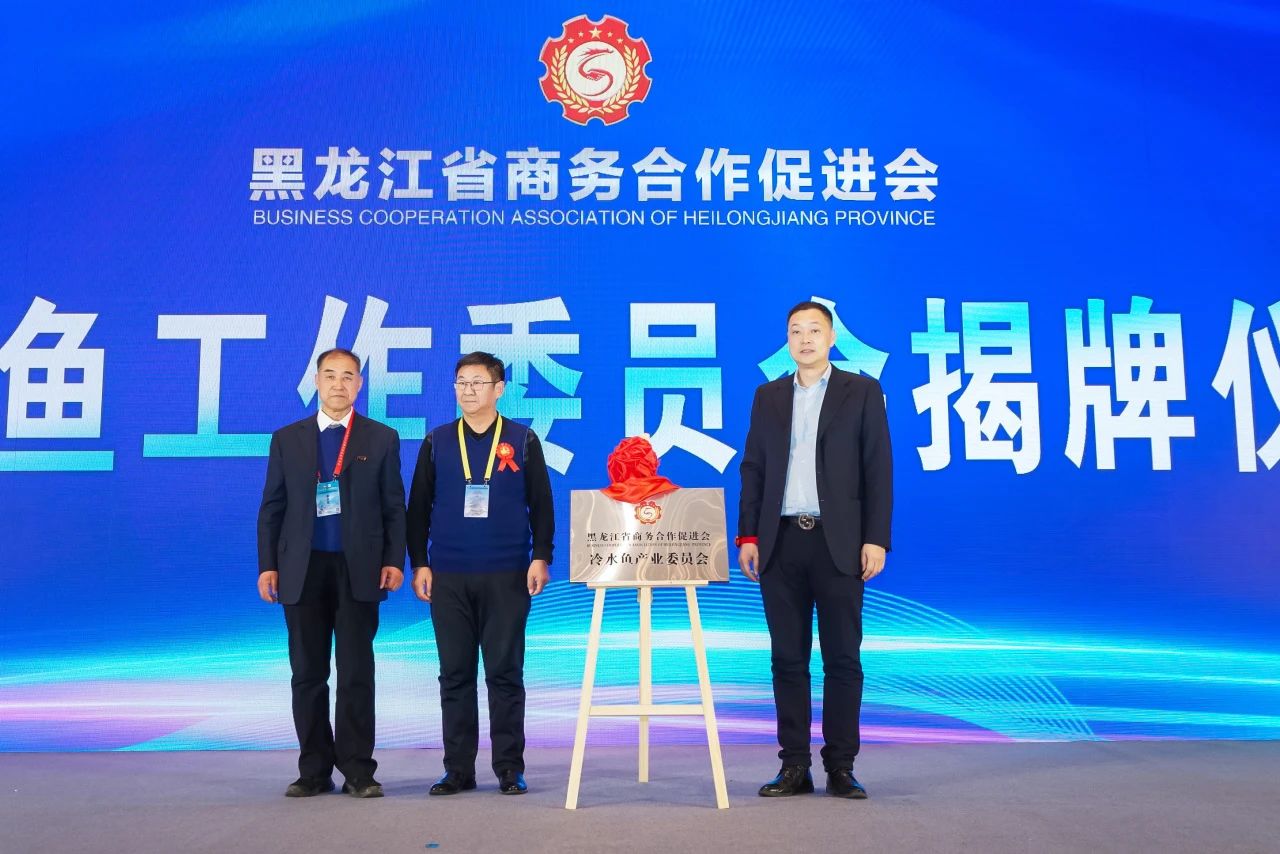 省商貿工會主席、省商促會執(zhí)行會長申志國,興凱湖大白魚研究中心主任張曉光,撫遠東龍鱘業(yè)有限公司董事長李國志共同為省商促會冷水魚產業(yè)工作委員會揭牌。