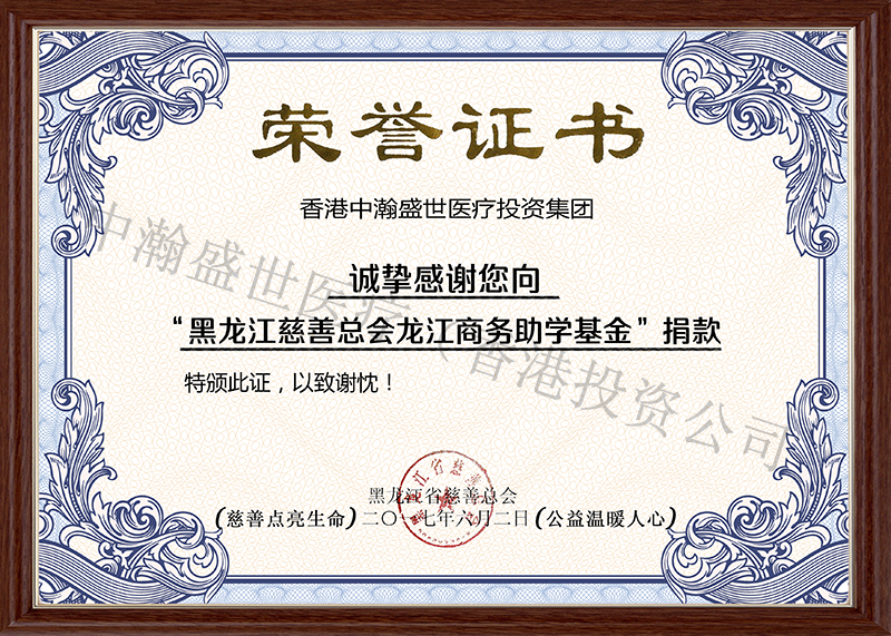 黑龍江省慈善總會(huì)頒發(fā)