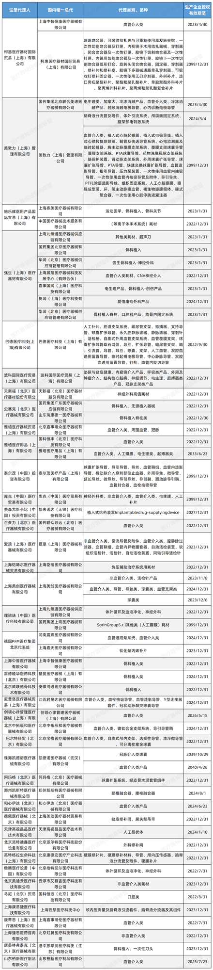 史賽克的國(guó)內(nèi)總代也有2家,作為全球骨科的巨頭,骨科植入、無(wú)源植入器械由國(guó)藥集團(tuán)廣東醫(yī)療器械供應(yīng)鏈有限公司代理;骨科植入脊柱類(lèi)產(chǎn)品由山東瑞康德一醫(yī)療器械有限公司代理。