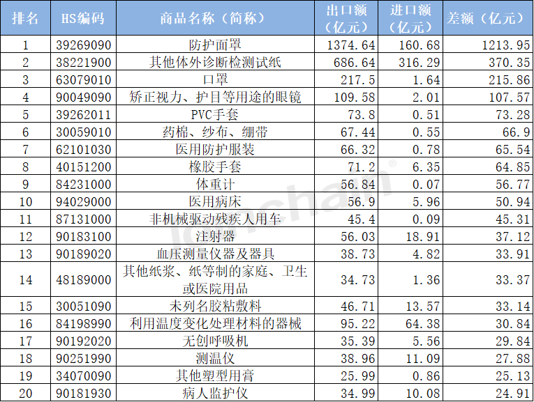 04、出口貿(mào)易/順差排名:防護用品貿(mào)易/順差最大